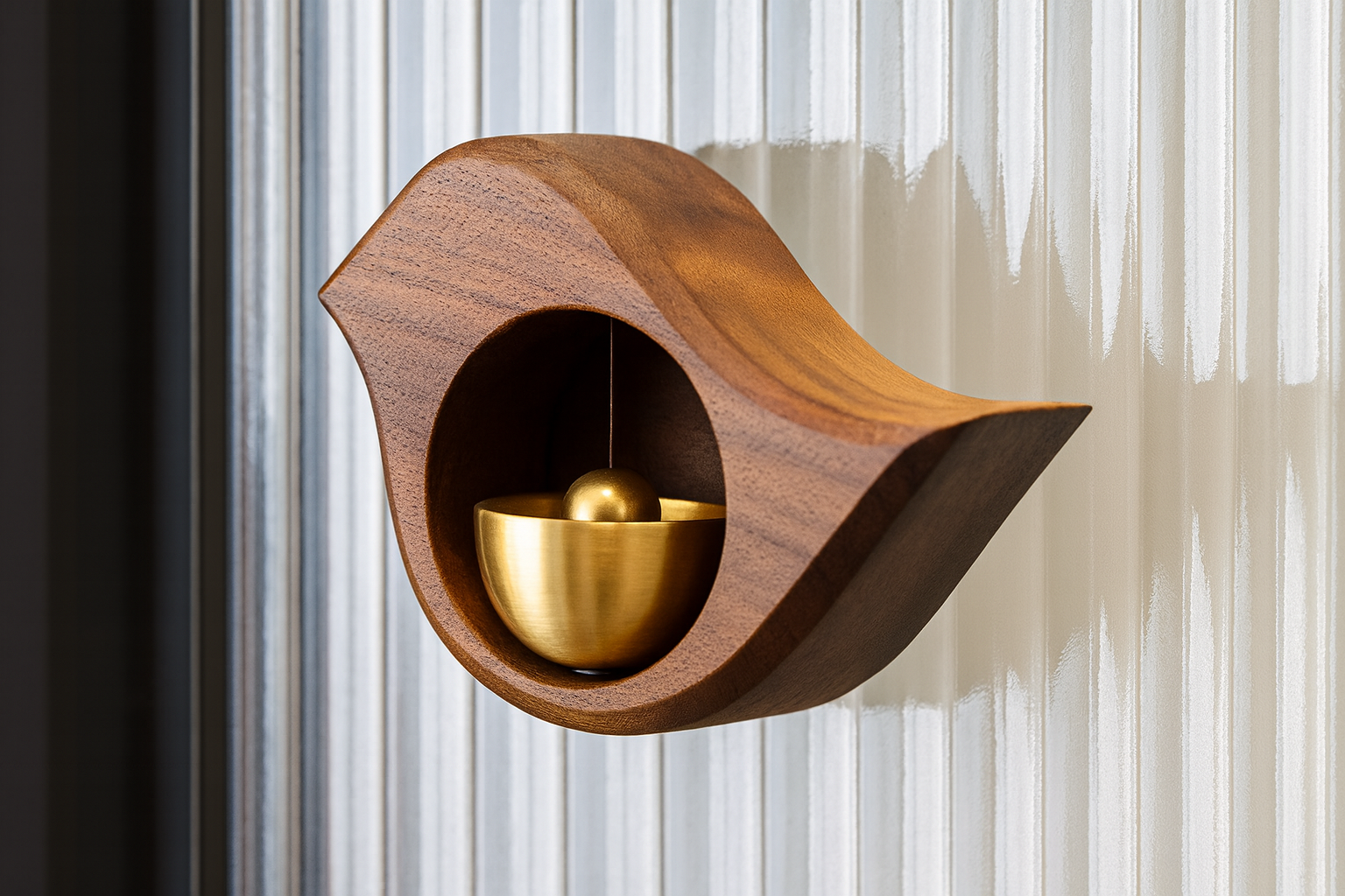 KazeTone™ combines natural craftsmanship with serene sound to bring harmony to any space. Handcrafted from fine wood and brass, this elegant doorbell produces a gentle, calming chime that enhances your home’s atmosphere and adds a sense of ceremony each time the door opens. Perfect for modern homes, cafés, or meditation spaces.